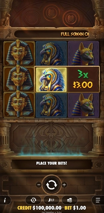 Desde el primer giro, sentirás la vibra mística del antiguo Egipto. Los carretes están adornados con amuletos, ojos de Ra, y ankh dorados, todos listos para abrir las puertas de la fortuna. Lo más emocionante ocurre cuando logras dos carretes completos del mismo símbolo o con wilds, ya que esto activa la función Respin Until You Win, en la cual el tercer carrete gira hasta conseguir una combinación ganadora.